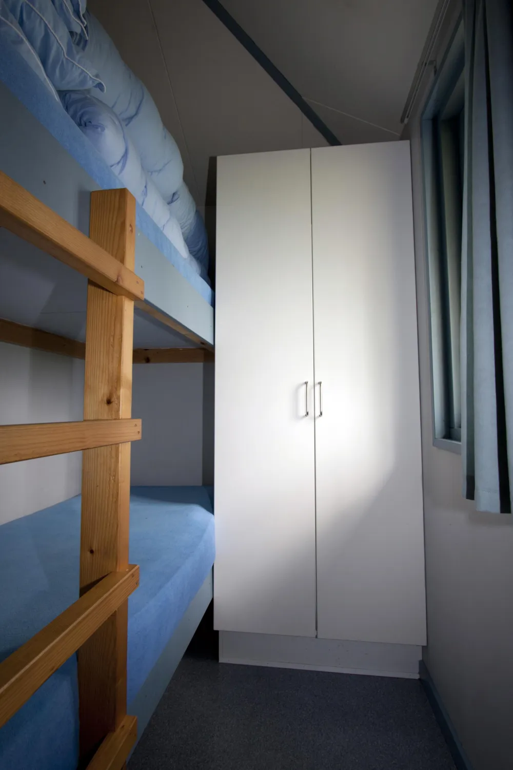 Mit Cleo bekommst du eine einfache und bequeme Unterkunft mit dem Luxus eines festen Dachs, bequemen Betten und eigener Terrasse – und gleichzeitig die Nähe zu den vielen Angeboten des Campingplatzes und der Natur direkt vor der Tür. Eine kleine Hütte mit großem Urlaubsgefühl. Du kannst dein Auto an der Hütte parken.