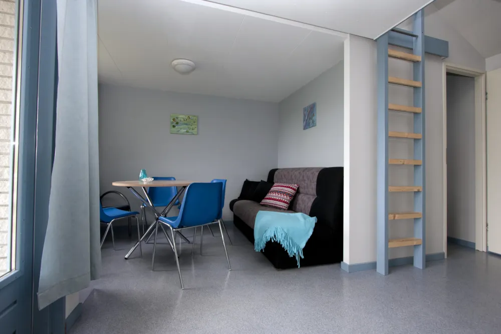Es gibt zwei separate Schlafzimmer – eines mit Doppelbett und eines mit zwei Einzelbetten. Im Wohnbereich findest du einen Essplatz sowie ein Schlafsofa mit Platz für zwei Personen. Bettdecken und Kissen sind vorhanden, Bettwäsche kannst du mitbringen oder mieten.
