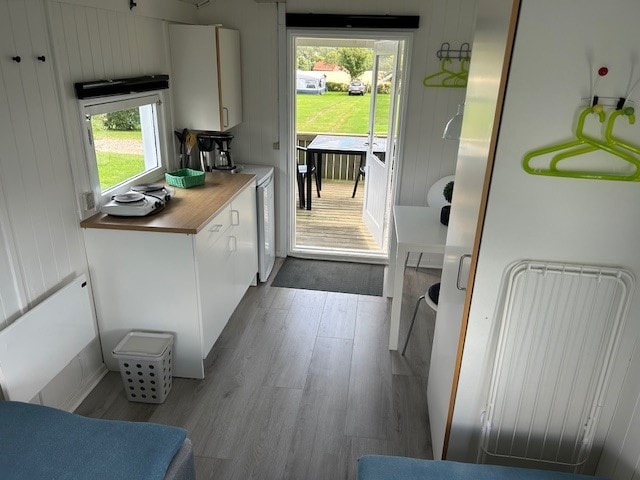 Der Bungalow auf dem Campingplatz Løgballe ist die perfekte Wahl, wenn du das Campingleben mit etwas mehr Komfort und deinem eigenen Rückzugsort genießen möchtest. Hier bekommst du ein kleines Ferienhaus mit viel Platz und eigenem Bad – umgeben von ruhiger Natur und in der Nähe des Vejle Fjords.
