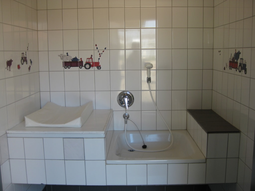 Bad und WC befinden sich nicht in der Hütte, stehen dir aber im nahegelegenen Servicegebäude zur Verfügung. Dort findest du Toiletten, Familienbäder, einen Baby-/Wickelraum sowie eine gut ausgestattete Gemeinschaftsküche mit Öfen und Mikrowellen, die du frei nutzen kannst.