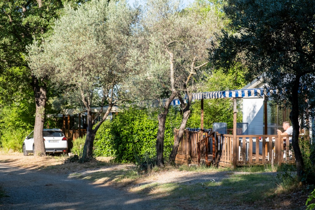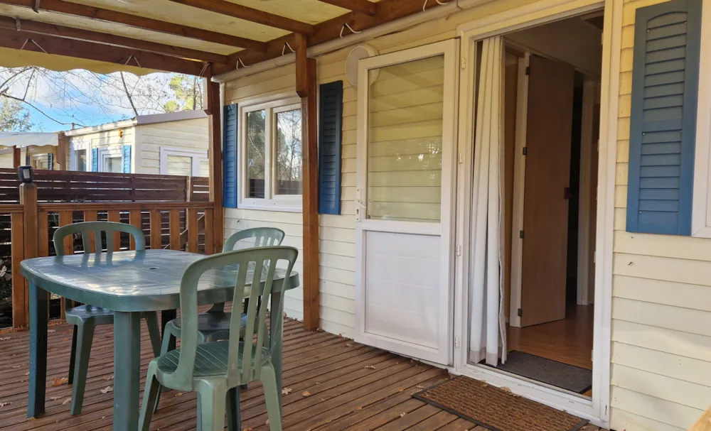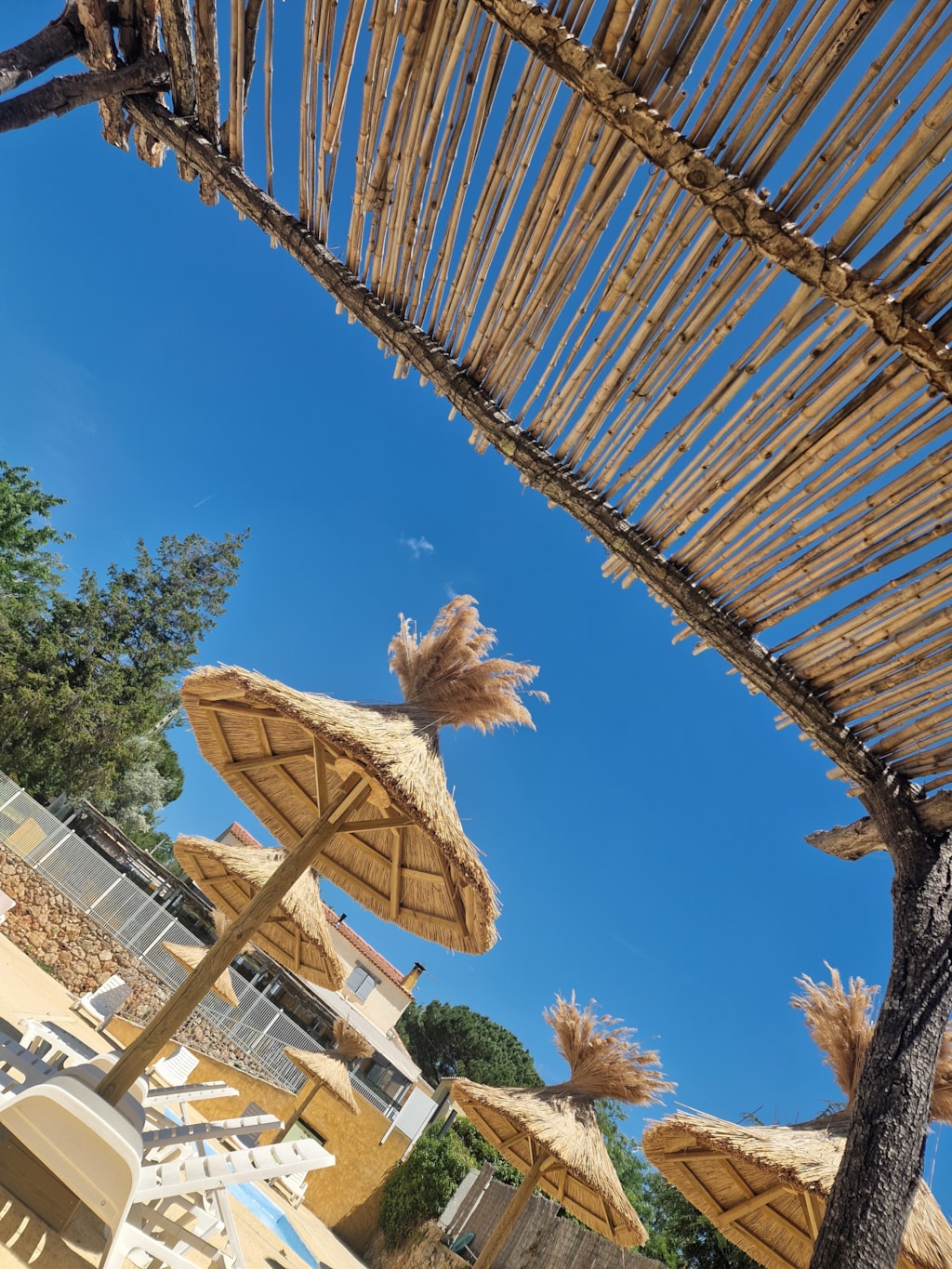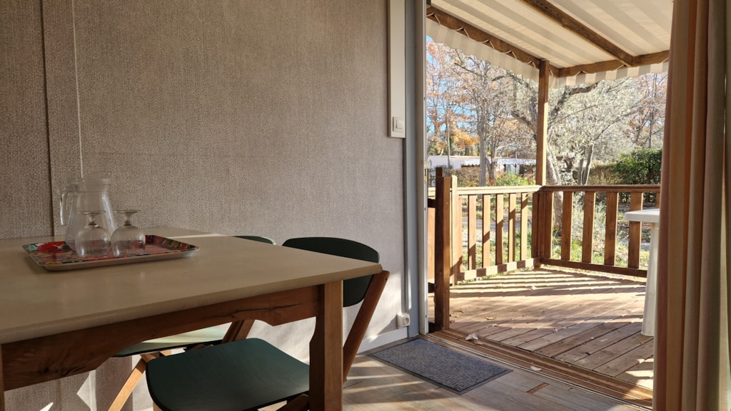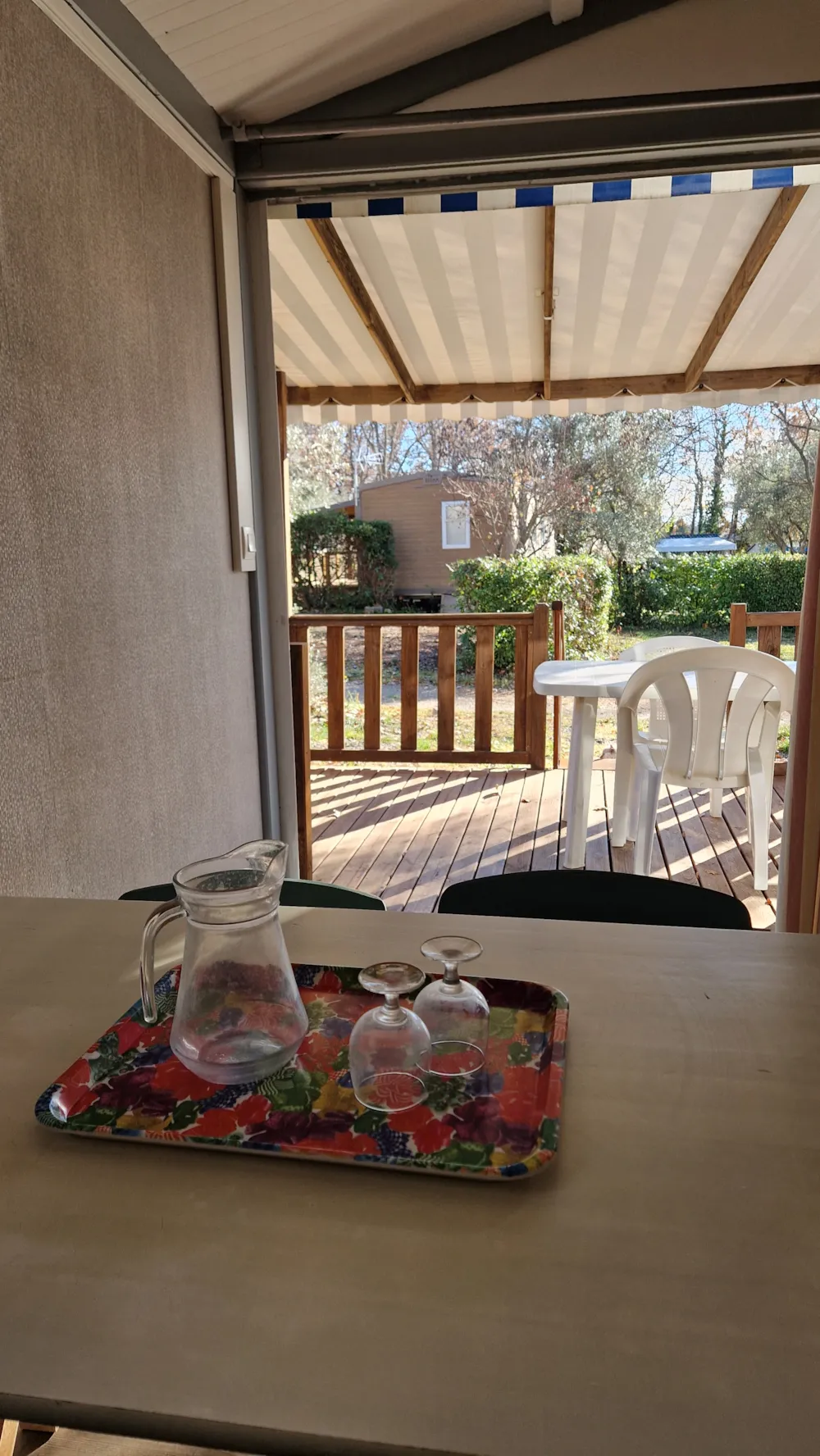 Erleben Sie einen authentischen Urlaub in unseren Ferienhäusern – zwar nicht brandneu, aber bestens gepflegt. Freuen Sie sich auf einen gemütlichen Wohnbereich und einen angenehmen, überdachten Essbereich, ideal zum Entspannen im Schatten der provenzalischen Sonne.