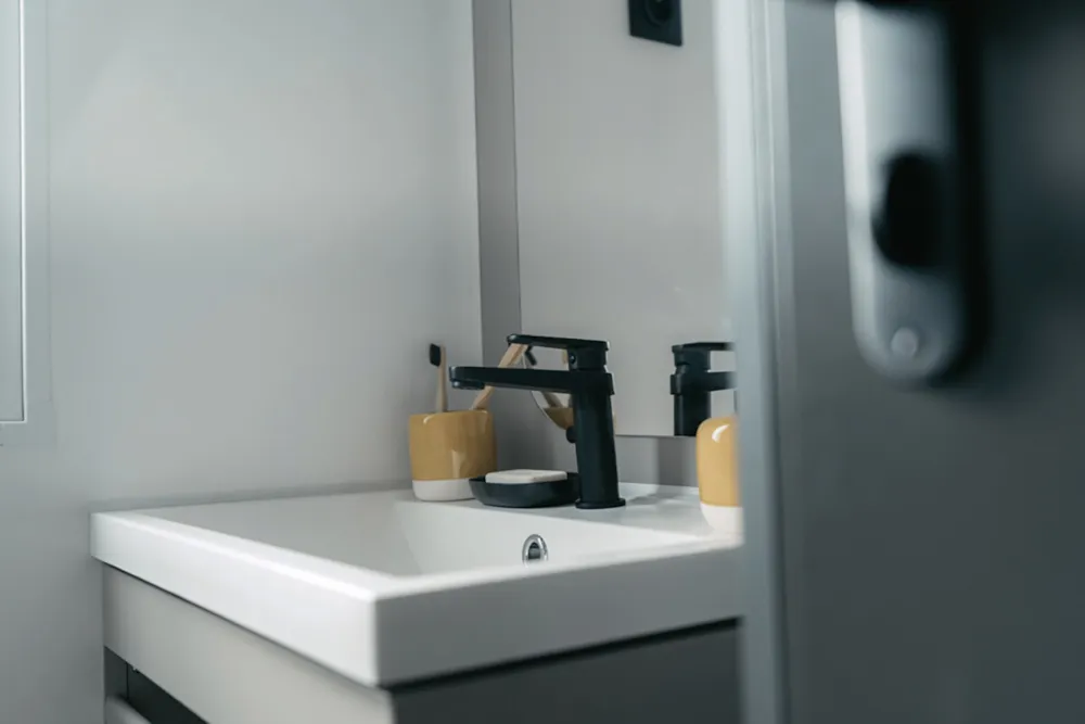 Die Gemeinschaftsduschen befinden sich in unmittelbarer Nähe und bieten bei Bedarf zusätzlichen Platz.