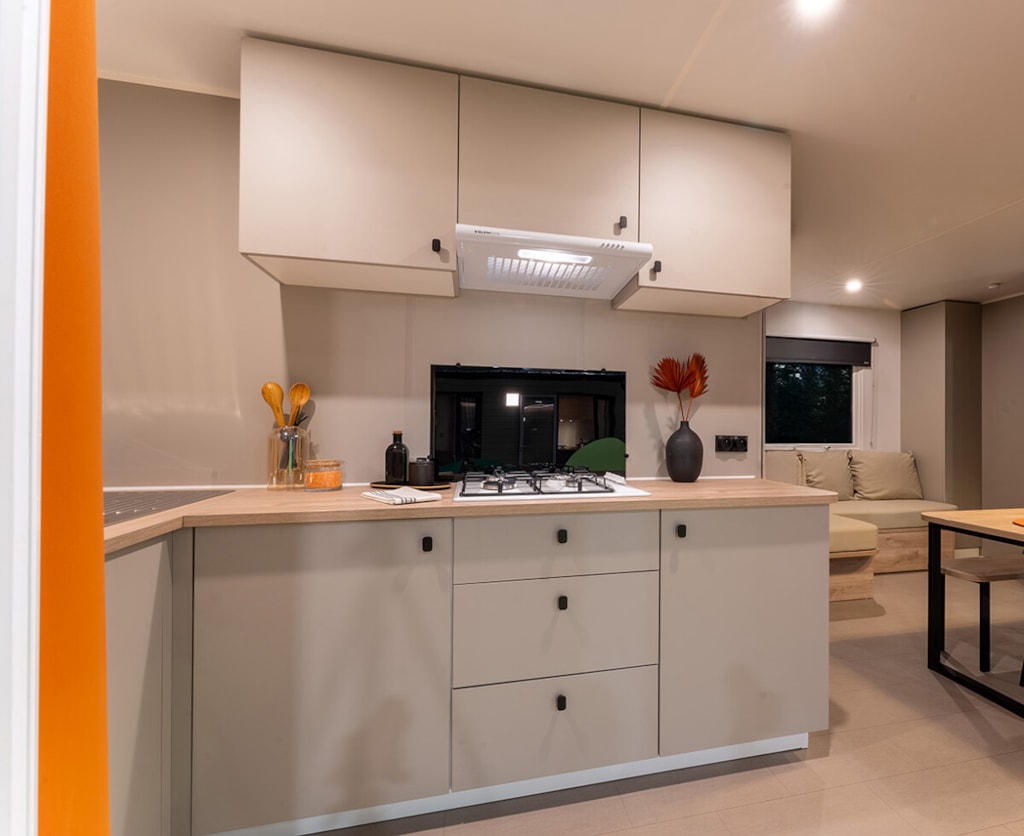 Unsere Grand Comfort PREMIUM-Reihe bietet Ihnen ein modernes, neuwertiges und klimatisiertes Mobilheim mit erstklassiger Ausstattung für einen unbeschwerten Aufenthalt. Die komplett ausgestattete Unterkunft beinhaltet Bettwäsche und Handtücher sowie zahlreiche praktische Annehmlichkeiten wie Geschirrspüler, Föhn und Grillplatte. Die geräumige, schattige Terrasse inmitten herrlicher Natur garantiert Ihnen unvergleichliche Momente der Entspannung. Alles ist vorhanden für einen angenehmen, komfortablen und wahrhaft erstklassigen Urlaub.