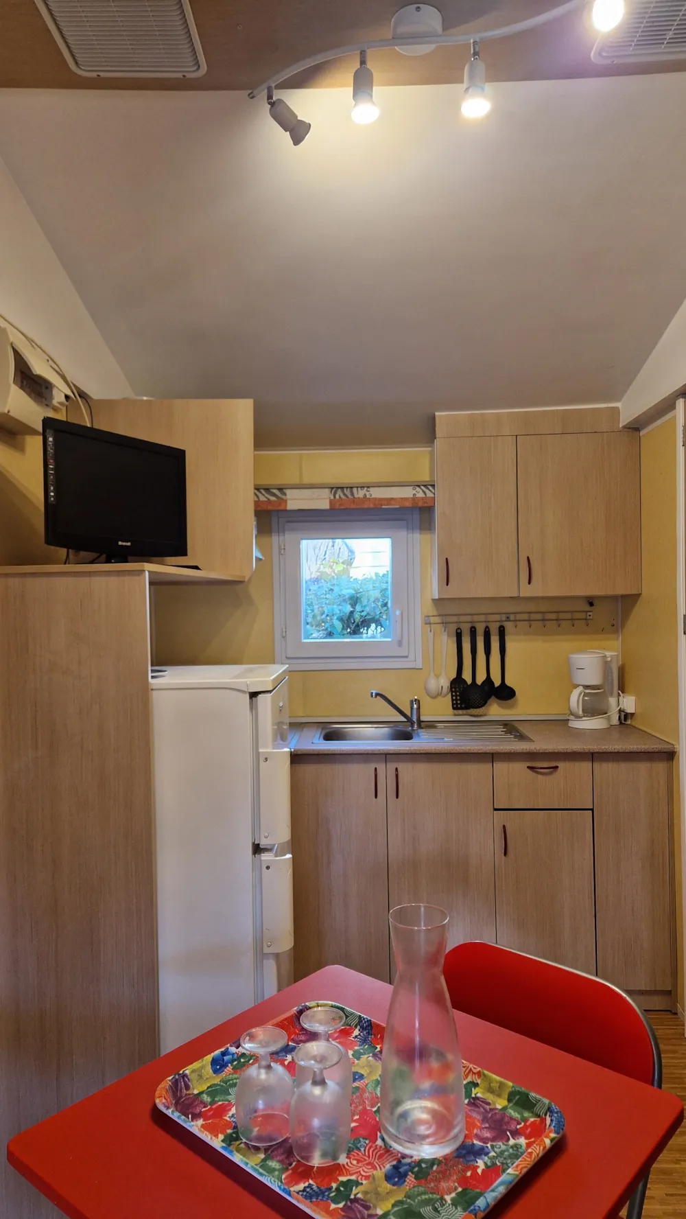 Die Ausstattung in der Küche, Gläser, Teller, Besteck, entspricht nicht dem Standard. Von allem fehlte etwas für größere Familien. Die Räume sind eng, das muss man wissen Toilette extrem eng, besser man geht ins Toilettenhaus