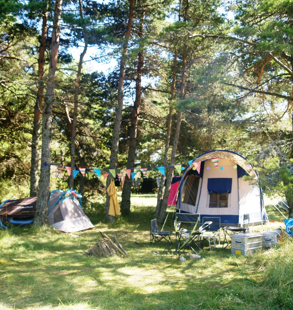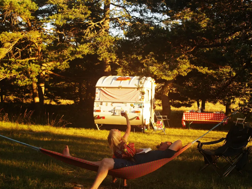 Die Stellplätze sind auf 3 Sektoren des Campingplatzes verteilt: Grand Terrain, Pinèdes, Bois Lointain, jeder mit seinen eigenen Besonderheiten. Bitte teilen Sie uns Ihre Wünsche mit, damit wir Ihnen einen geeigneten Stellplatz zuweisen können. Viele Stellplätze haben Stromanschluss, es gibt Wasserstellen auf dem Gelände und einen Gemeinschaftsgrill in der Nähe der Rezeption. Die Haupttoilette befindet sich neben der Rezeption in einer alten, umgebauten Schafscheune. Es gibt auch eine Toilette in einem der Pinienhaine und Trockentoiletten.