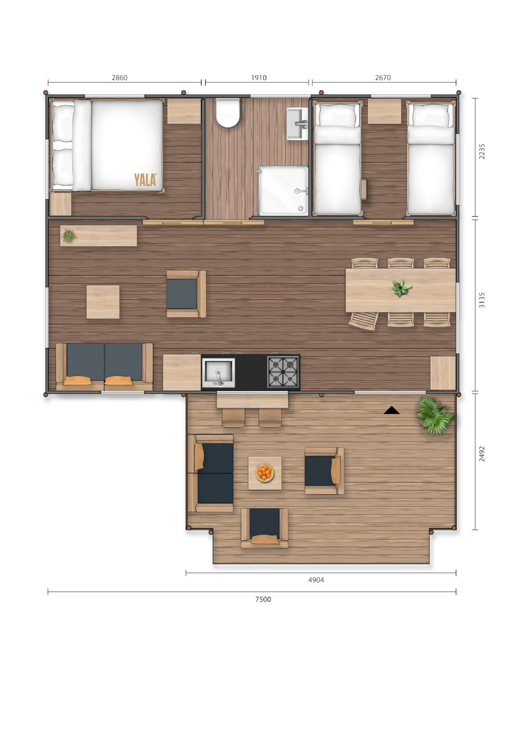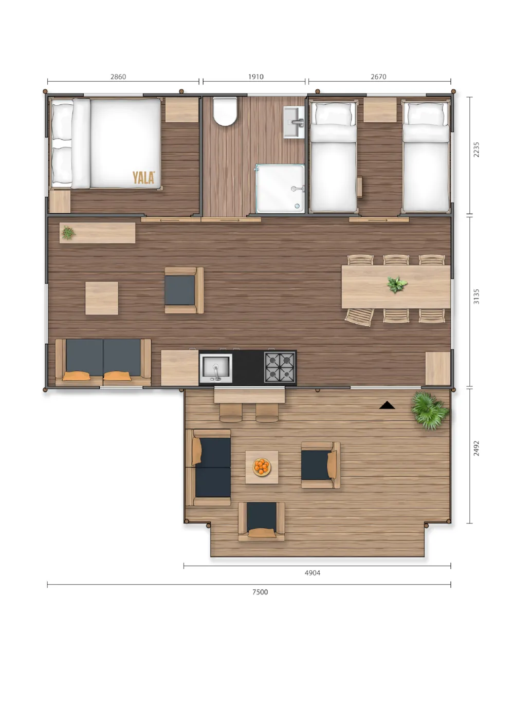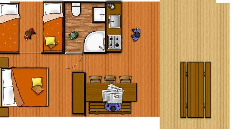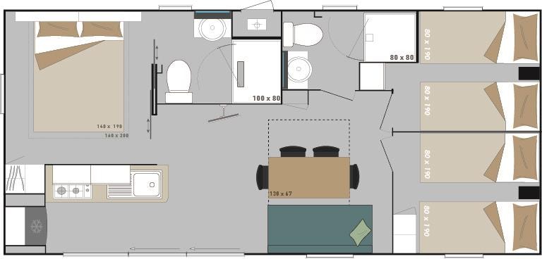 4 PERSONS SLEEP IN THE MOBILE HOME, 2 PERSONS SLEEP IN THE EXTRA TENT IN THE GARDEN
