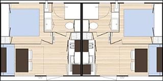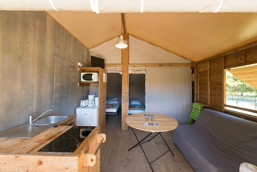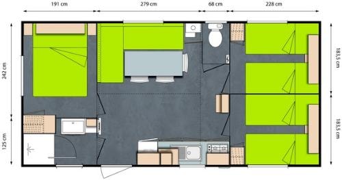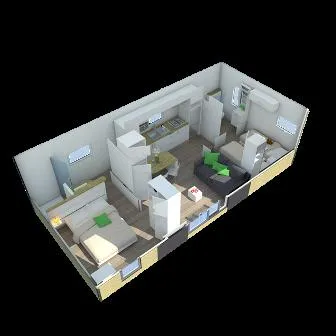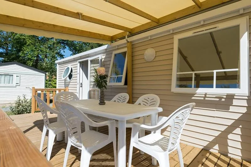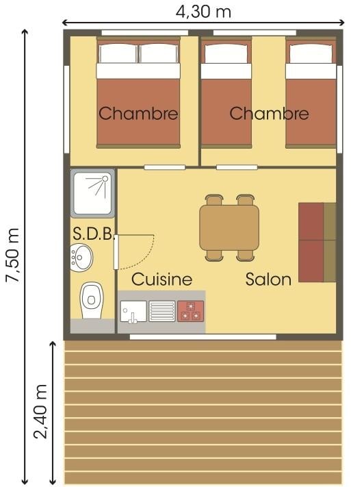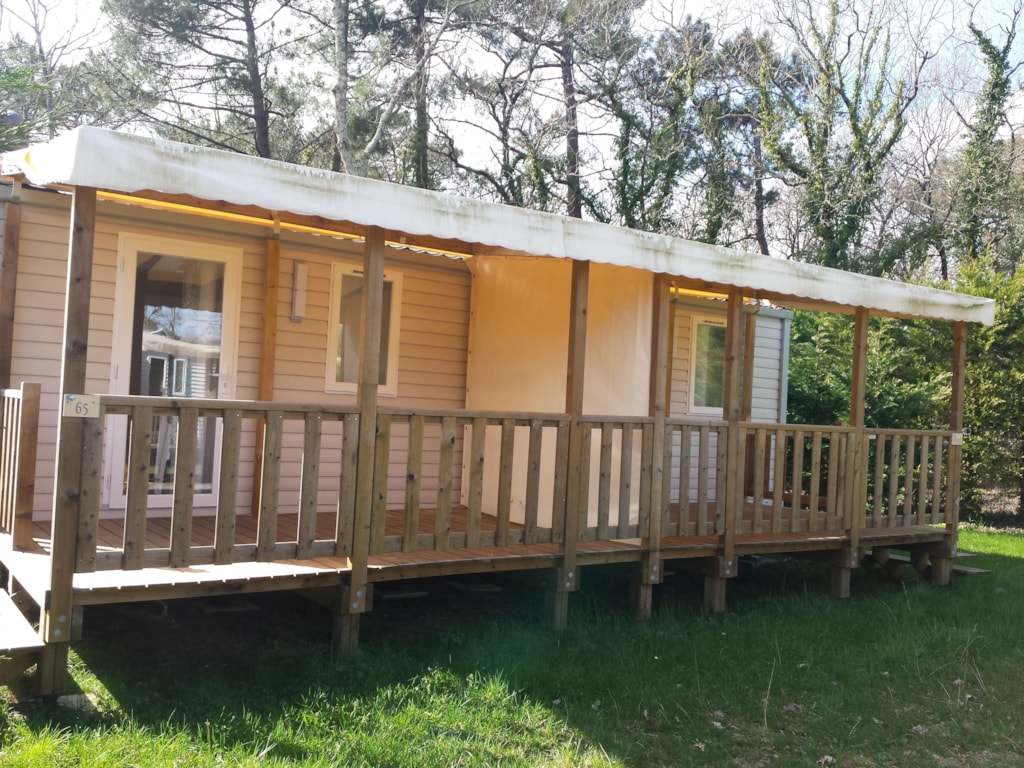 L'esprit Lodge sur Pilotis à 1.20 m du sol ! Cabane sur Pilotis tout confort avec 1 chambre lit double, 1 chambre 2 lits simples, cuisine équipée, salle d'eau avec douche et WC. Terrasse semi couverte avec table bois et bancs. Télévision et WIFI gratuits. Tarif pour 4 personnes. Pas de fermeture avec clé.