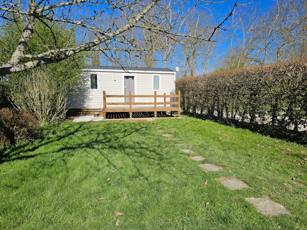 Ausgestattetes Mobilheim 30 m2 4/6 Schlafplätze Küche: ausgestattet mit Kochplatten, Mikrowellenofen und einem Kühlschrank/Gefrierfach Wohn- und Esszimmer mit einer Schlafcouch (140x190) Badezimmer mit Dusche, separates WC Zimmer 1 : 1 Bett für 2 Personen (140x190) Zimmer 2 : 2 Betten für 1 Person (80x190) Bettdecken zur Verfügung gestellt Reinigungsutensilien vorhanden Holzterrasse und Gartenmöbel.
