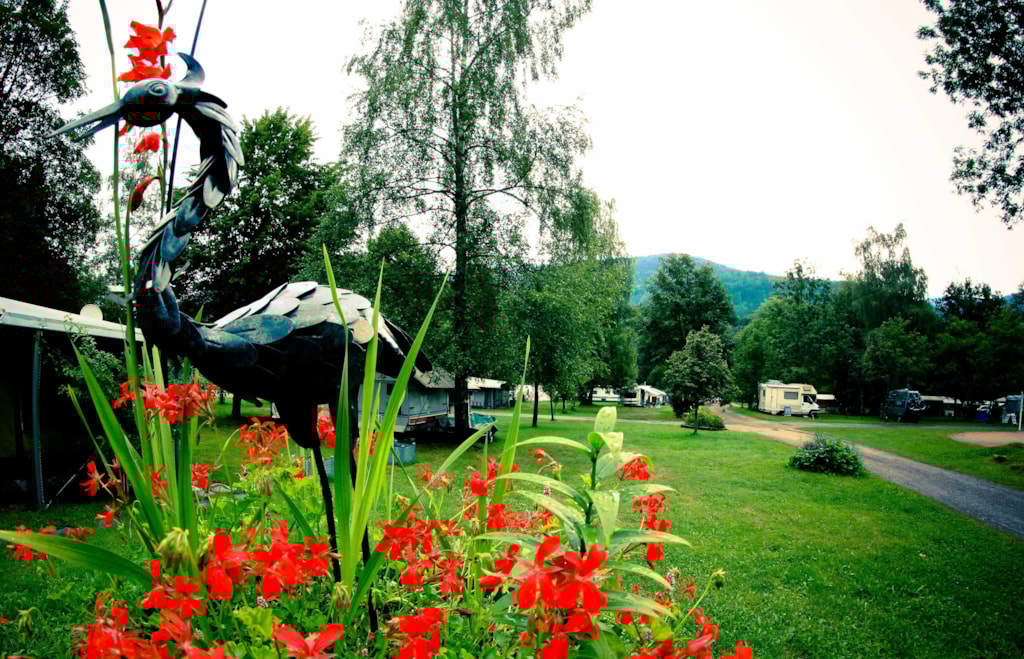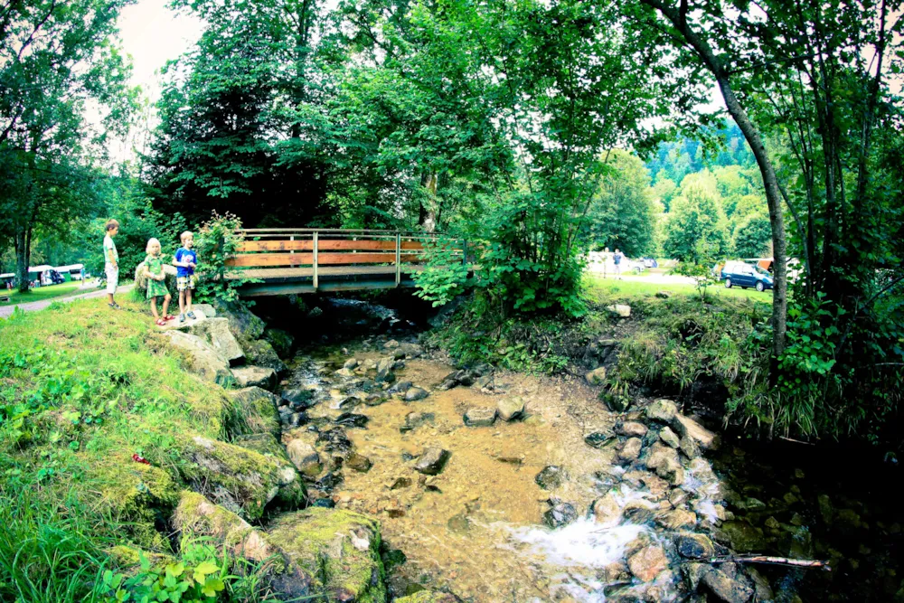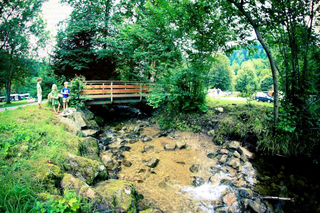 Die Lage des Platzes, hier kann man sich in toller Natur erholen. Idyllisch gelegen mit einem Bach mitten durch den Platz.