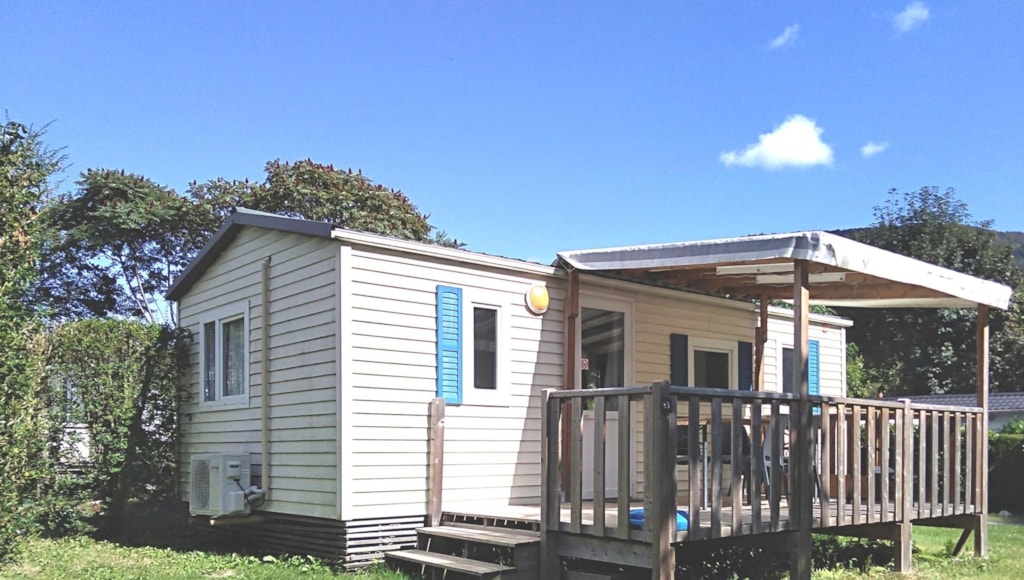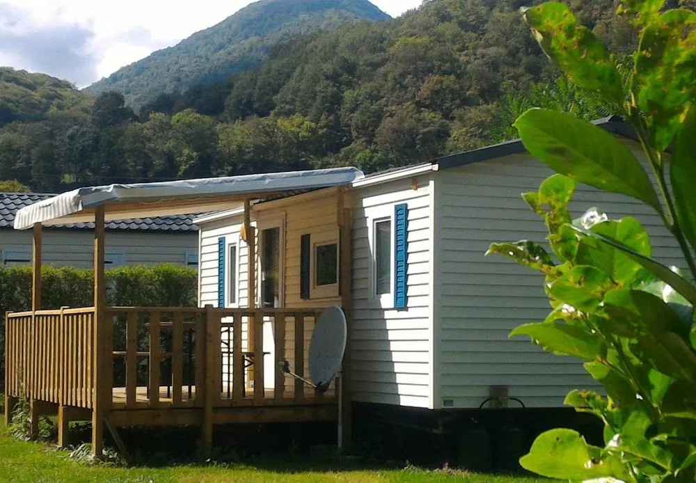 Entlang des Flusses, ein hübsches, kleines, schlichtes Bungalow-Stil mit einer schönen überdachten Terrasse.