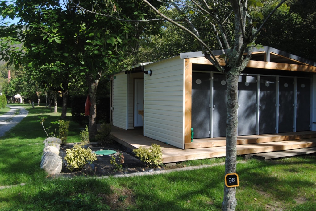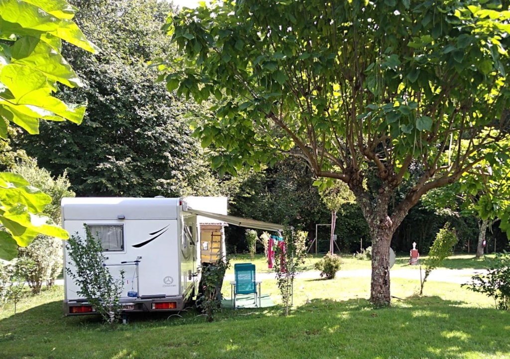 Ein ruhiger, grüner Campingplatz mit sehr großen schattigen Plätzen . Wunderbar war die Nähe zum Fluss, der mitgenutzt werden kann.