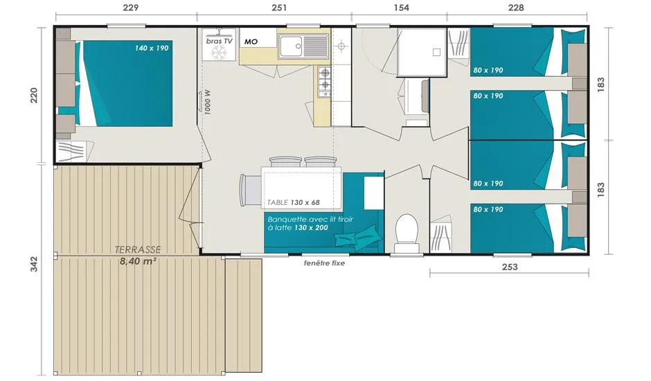 Parce que les vacances doivent permettre à tous de se ressourcer, ce modèle a été spécifiquement conçu pour une accessibilité facilitée aux personnes à mobilité réduite :