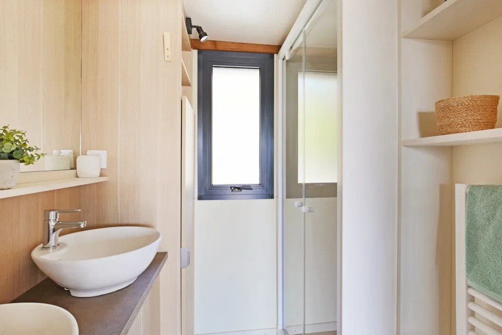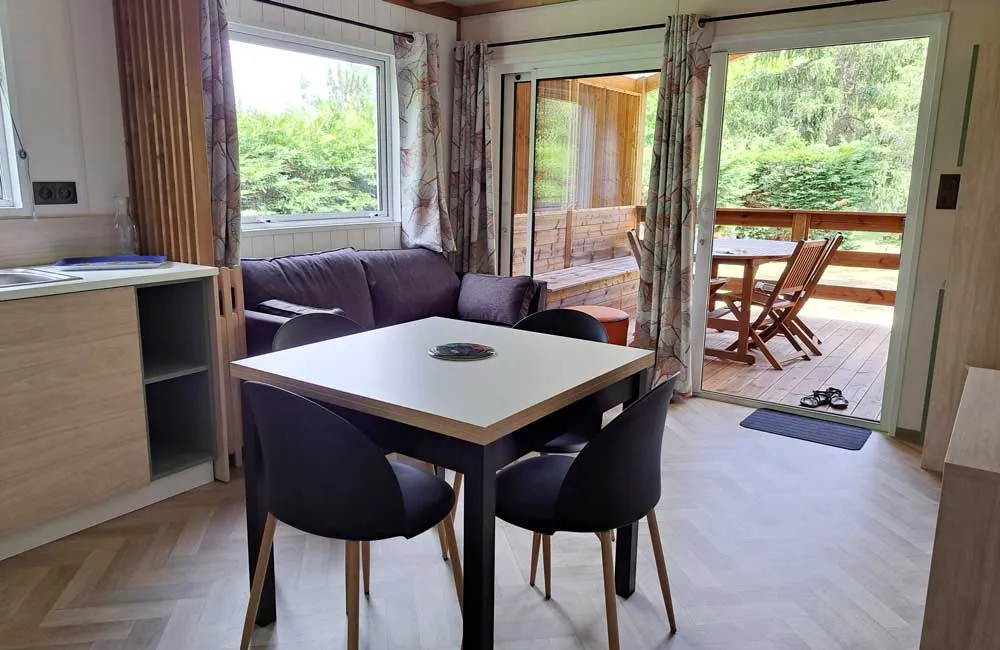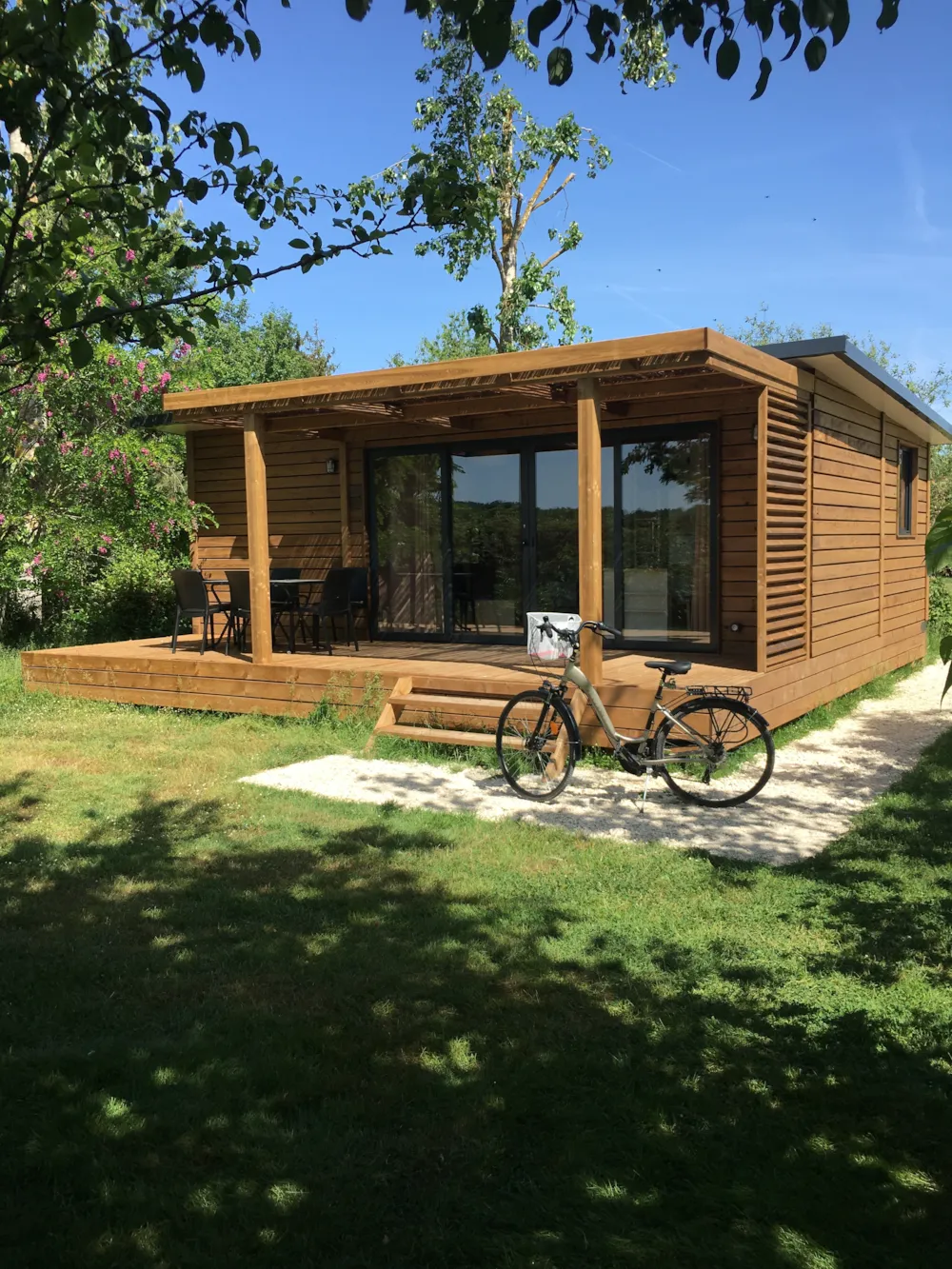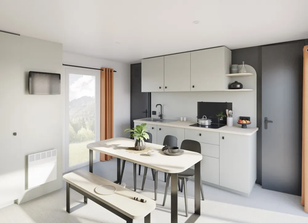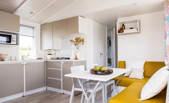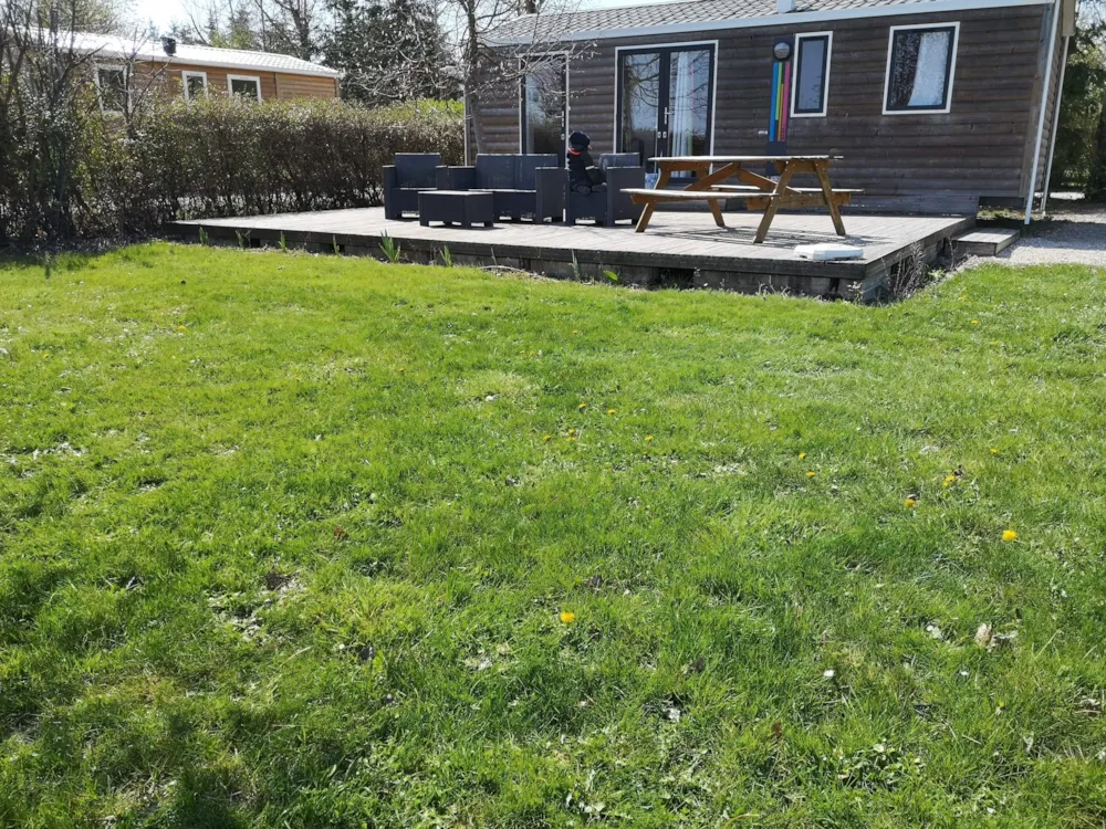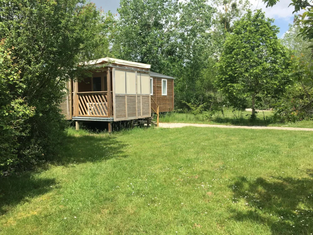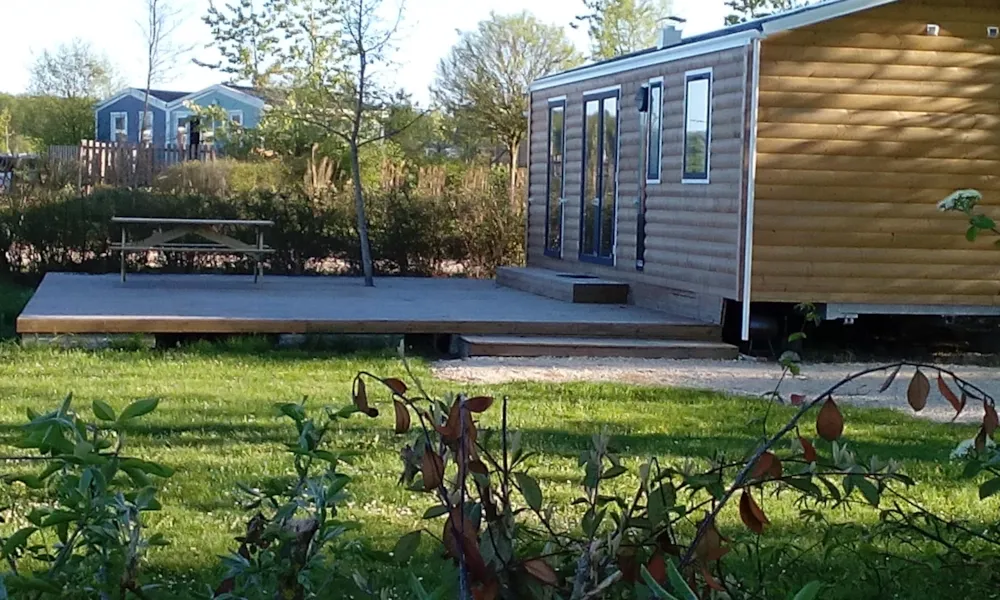 Ce nouvel hébergement est excentré du cœur du camping, offrant le calme et la tranquillité. Certains offrent une vue panoramique sur la campagne et sont entièrement au soleil