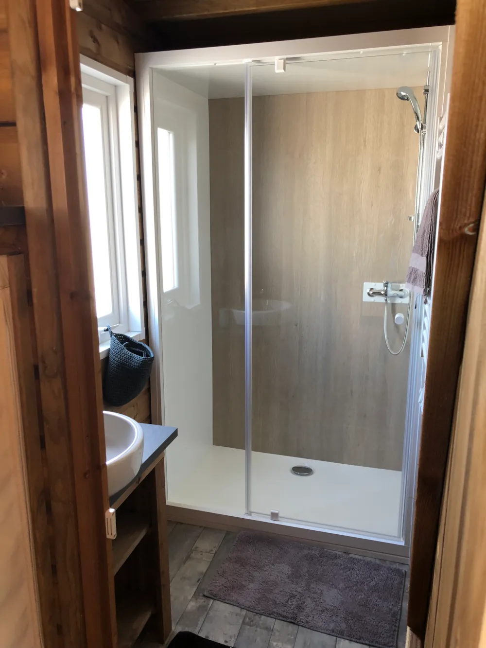 - Une cabine de douche aux dimensions XL
