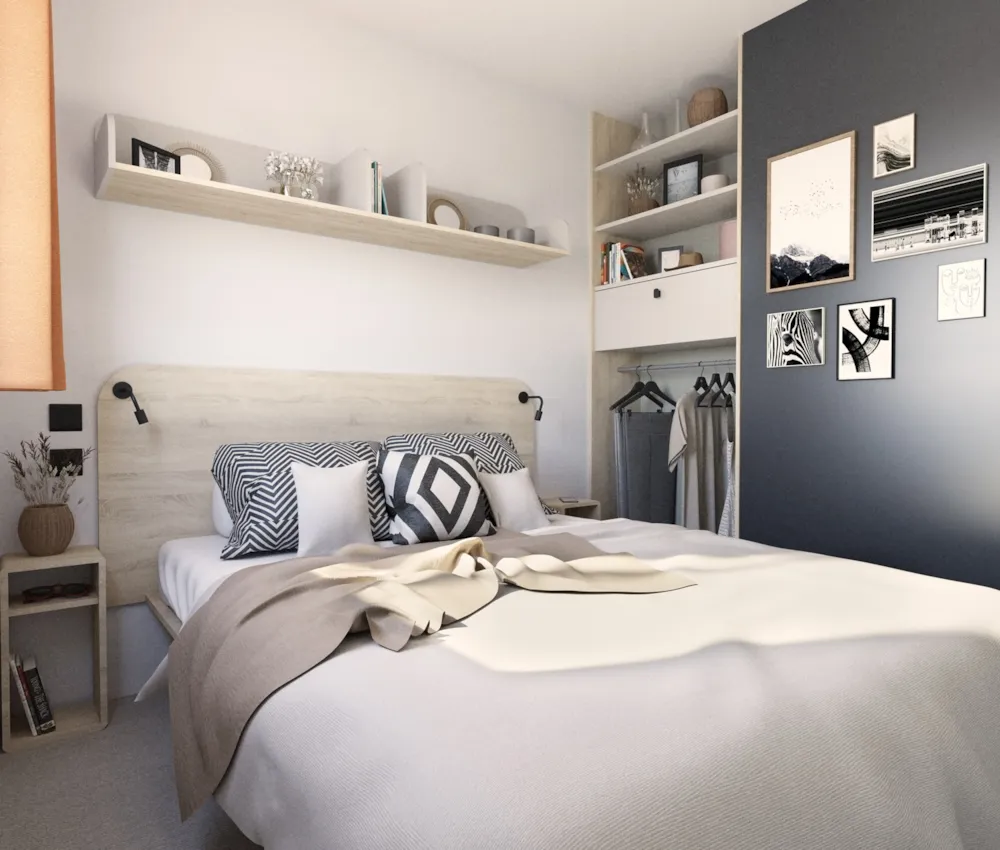 - Permettant un accès aisé aux chambres et à la salle d’eau par portes coulissantes