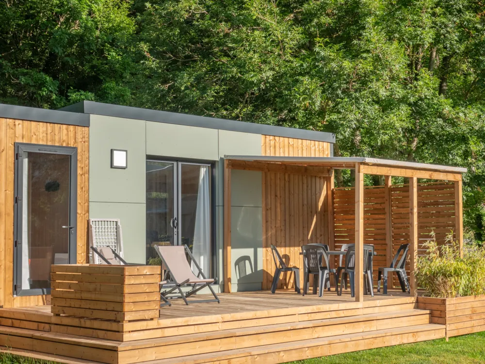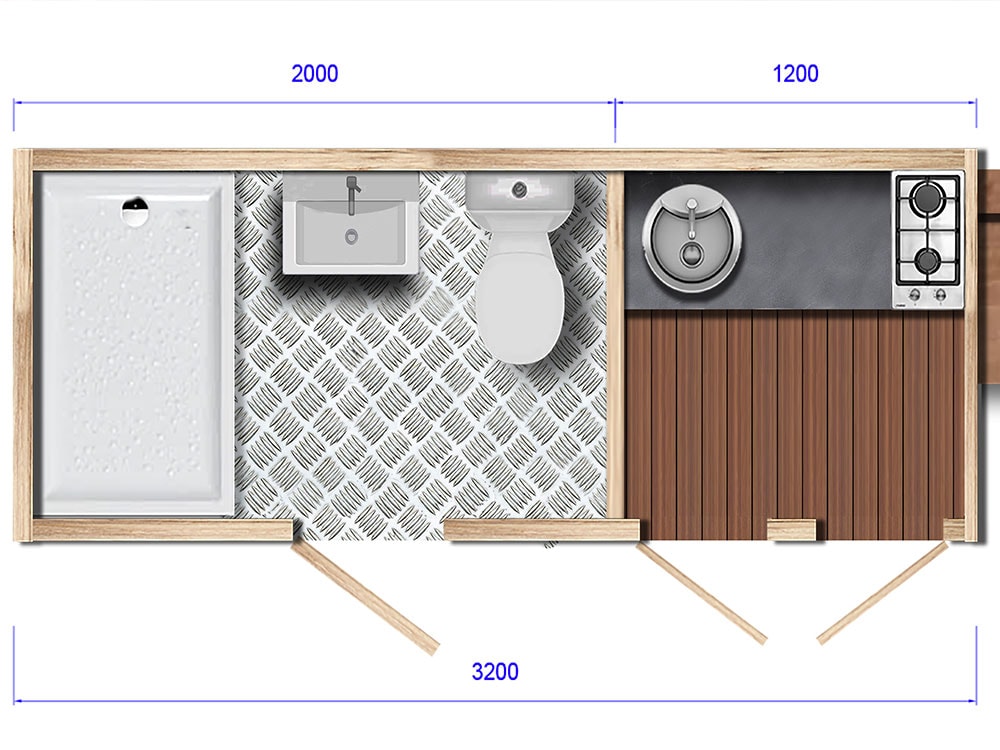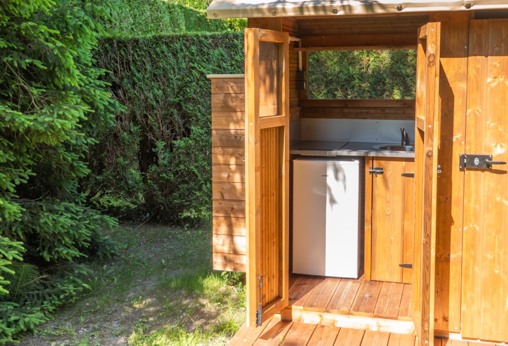 - Privates Sanitärgebäude mit WC, Dusche und Küchenbereich