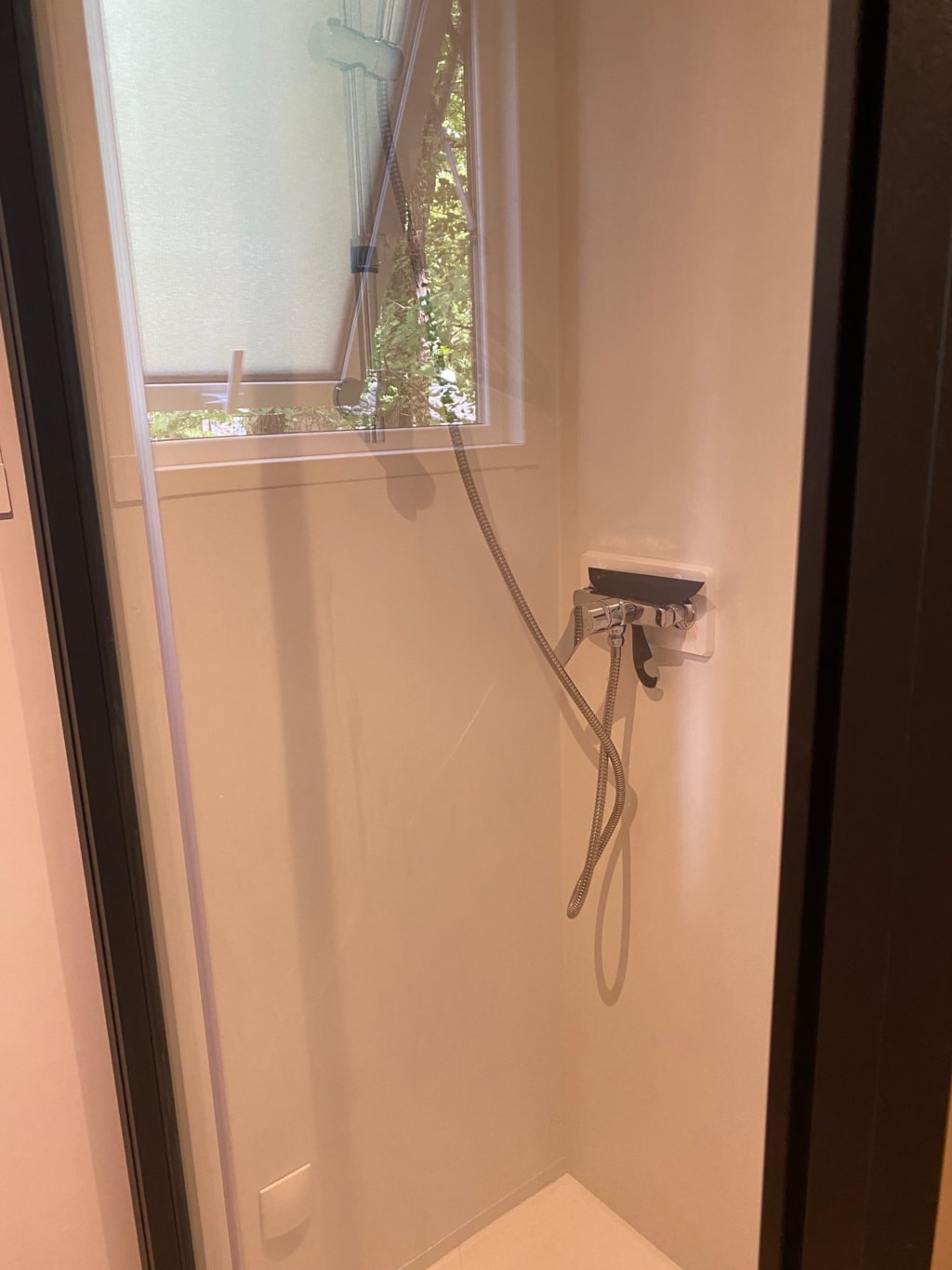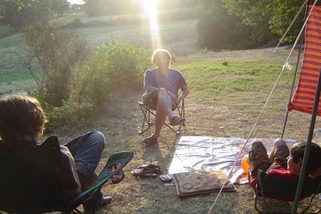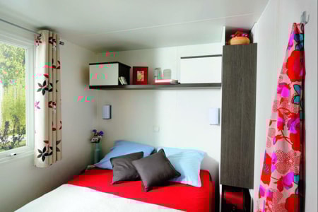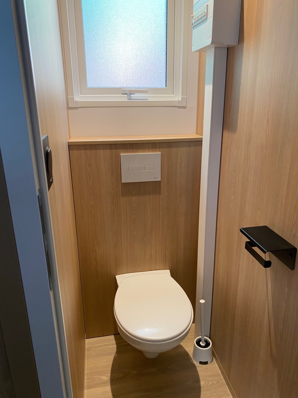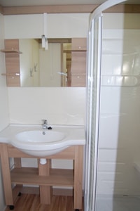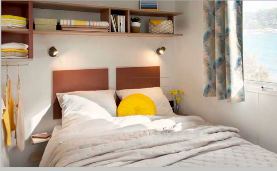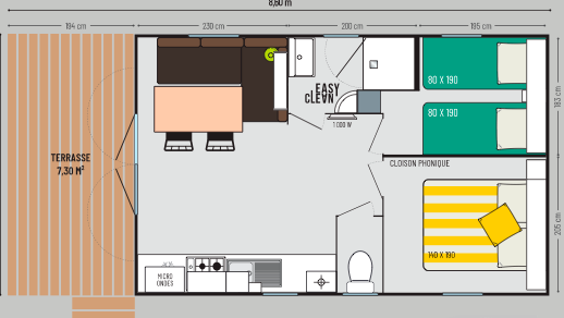 une chambre avec 2 lits simples, salon, salle de bain avec douche, WC séparé,