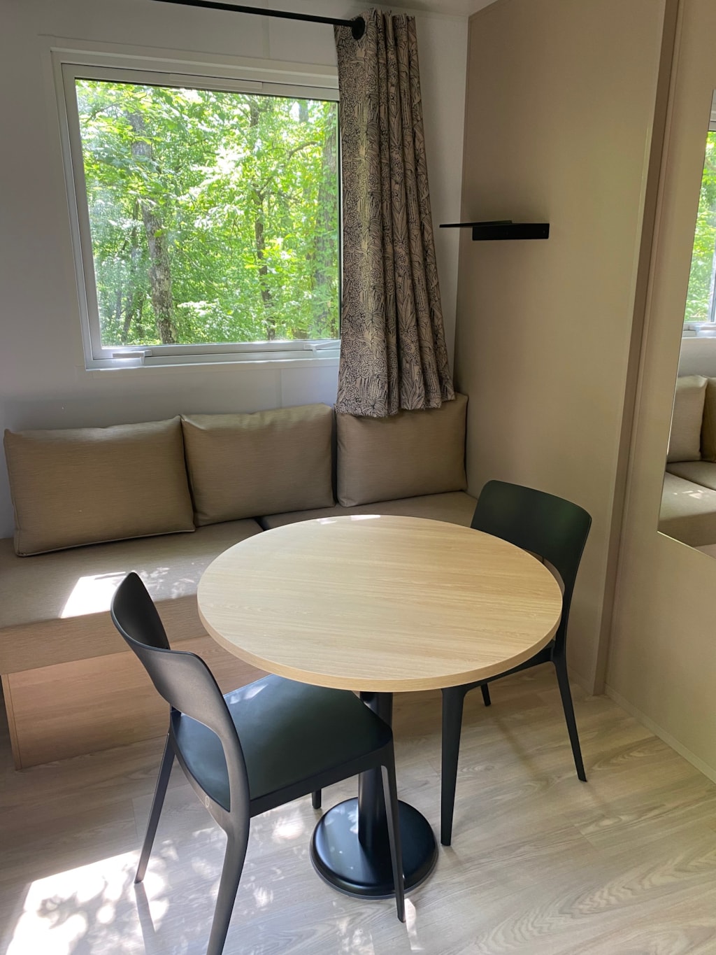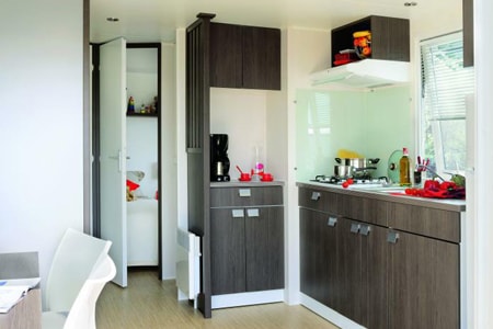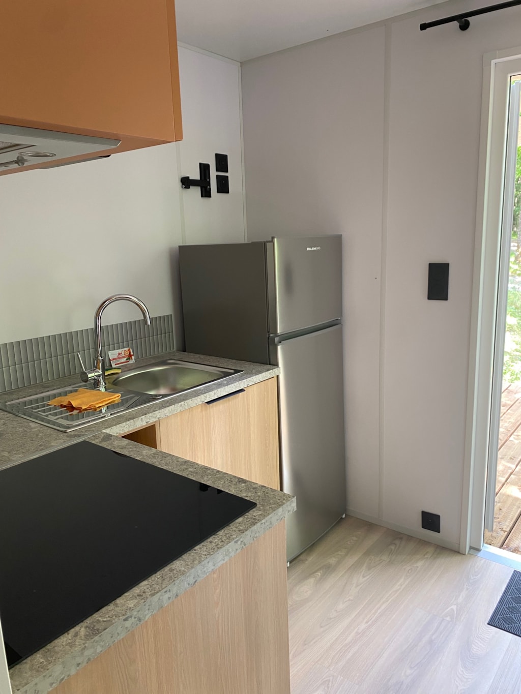 Confort et design! Cuisine équipée, plaques vitrocéramiques, hotte, réfrigérateur, four à micro ondes, vaisselle pour 4 personnes, une chambre avec lit 2 personnes,