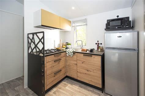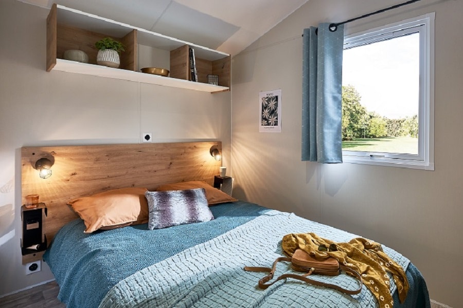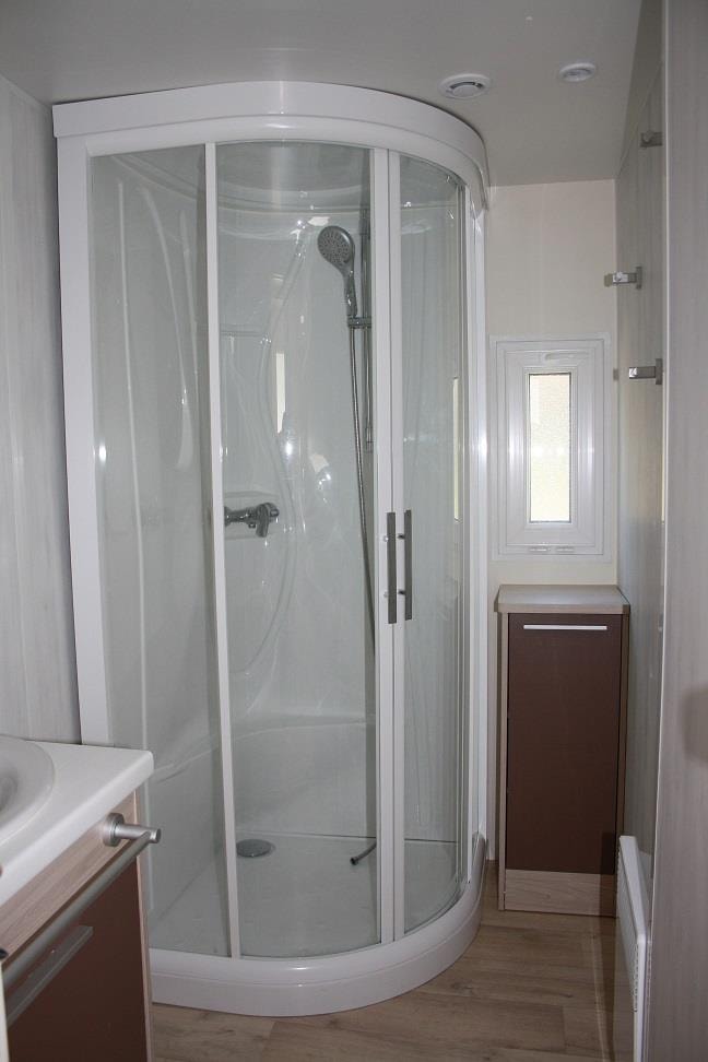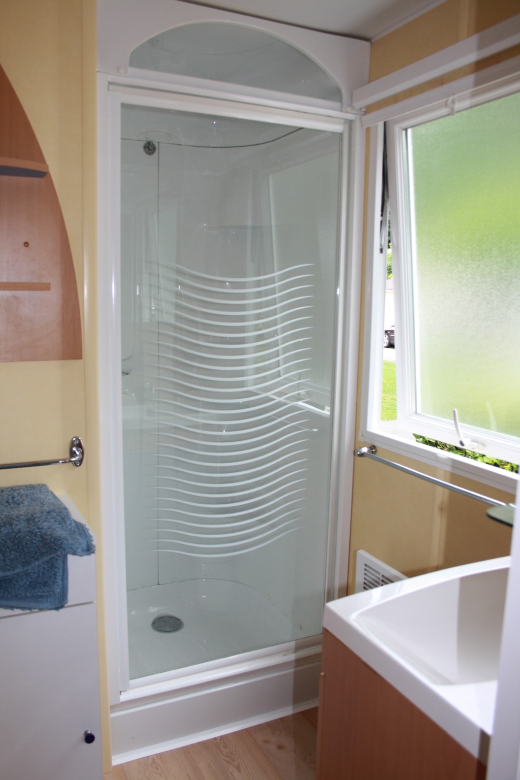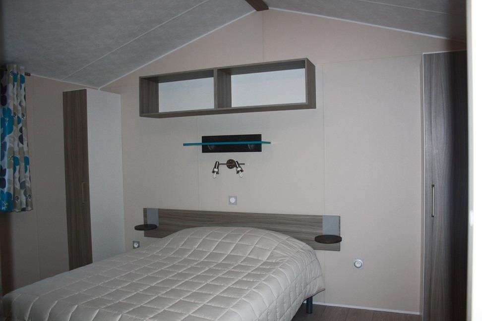 Composition: une chambre avec un lit de 140, et deux autres avec des lits jumeaux. WC séparé, douche lavabo. Coin repas, cuisine, télévision, grand salon (climatisation selon modèle) et terrasse couverte avec salon de jardin. Vaisselle fournie ainsi qu'une couverture ou couette par lit.