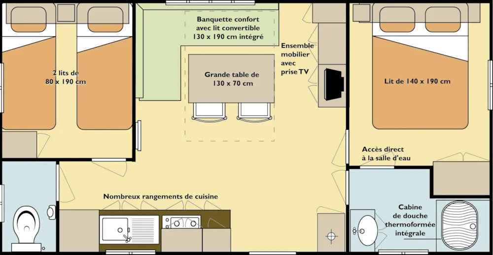 Unsere Cottages bieten alles, was man sich wünscht. Sie sind hell, komfortable und verfügen über praktischen Stauraum… genießen Sie einen geselligen Wohlfühlurlaub!