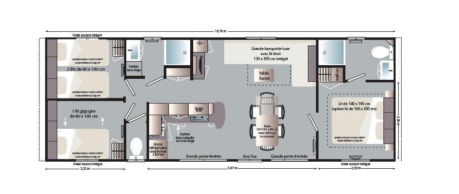 Mobil home Louisiane climatisé 3 chambres , toilette, salle de bain ,coin cuisine et coin repas .