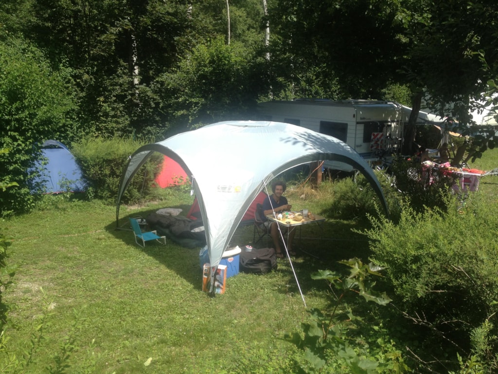 Großer Stellplatz (zwischen 100 und 120 m²), ohne Stromanschluss. Der Preis beinhaltet 2 Personen, eine Installation (Zelt oder Wohnwagen) und 1 Fahrzeug (Auto, Van oder Wohnmobil). 2. Fahrzeug möglich (Anhänger, Motorrad, 2. Auto oder Auto zusätzlich zum Wohnmobil), aber gegen Aufpreis. Wir akzeptieren auch Haustiere (an der Leine auf dem Campingplatz und nicht in den Gebäuden erlaubt) gegen einen Aufpreis. Alle unsere Stellplätze haben einen Wasseranschluss und einen Abfluss.