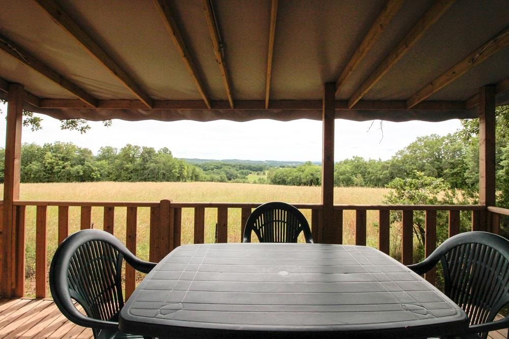 Shabby Chic cottage - surface area 18m² with covered terrace. Two cottages Shabby chic. Bonus: panoramic view of the Lot countryside from No. 25.