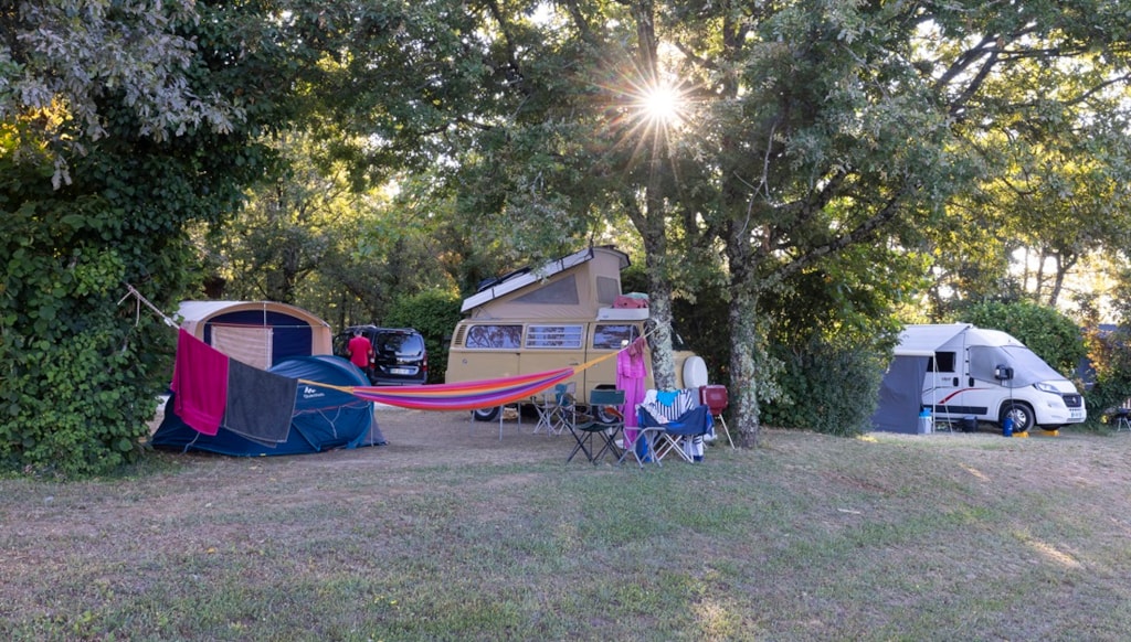 Pitch from 100m² to 150m² with 6 amp electricity. European sockets. Water point near each pitch. Price for 2 people (maximum 6 people per pitch), a caravan or tent with a car or camper van. Additional tents are permitted at no extra charge. However, we cannot be held responsible for lack of space on the pitch.