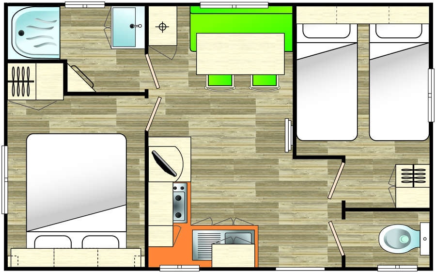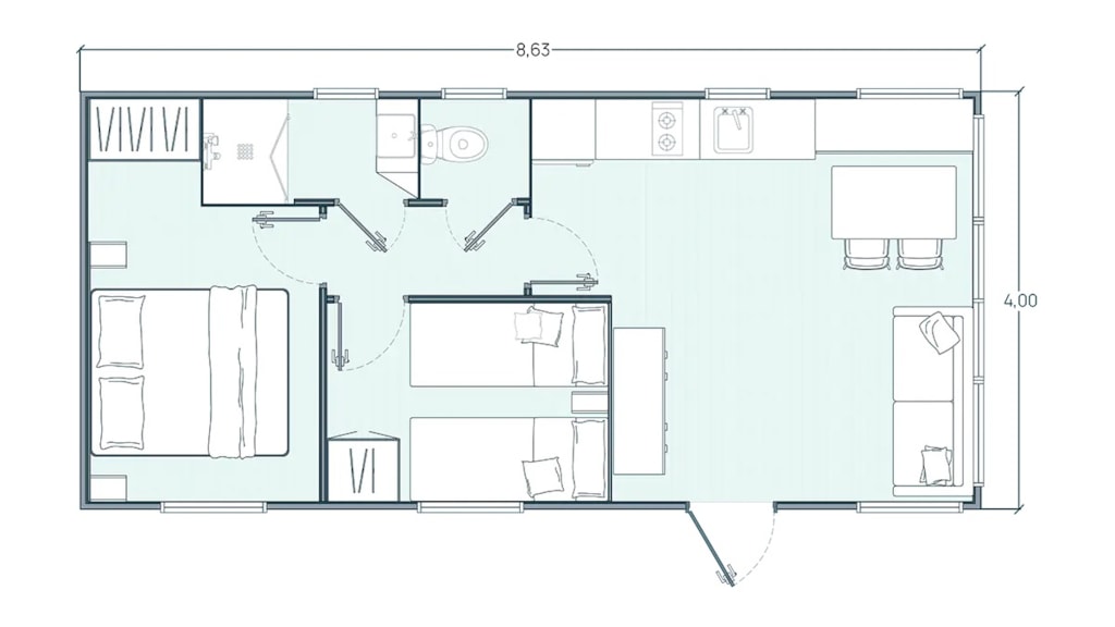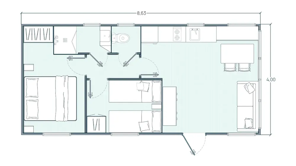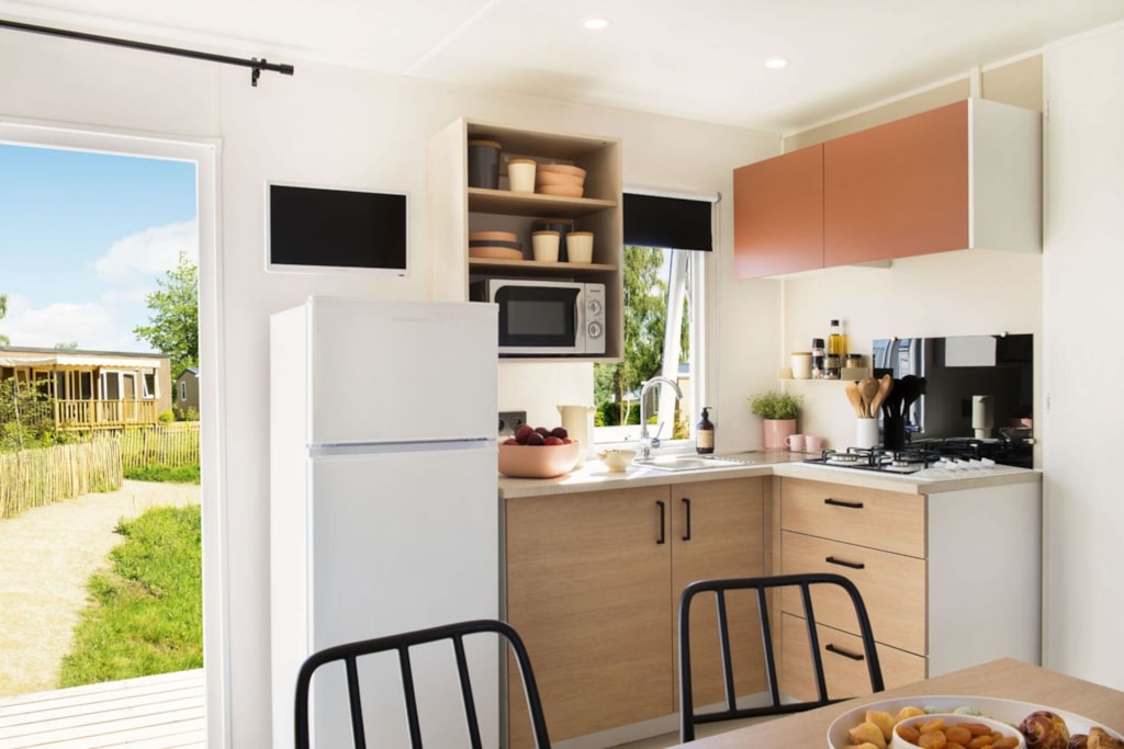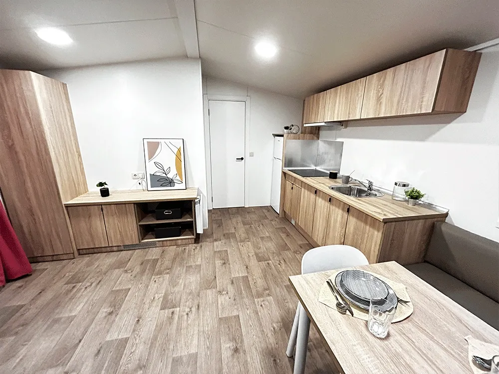 Unsere Signature Belvéo-Unterkünfte verfügen über eine voll ausgestattete Küche mit Zugang zum Wohnzimmer, Kissen und Bettdecken in den Schlafzimmern, ein Duschbad mit Waschbecken und eine separate Toilette.