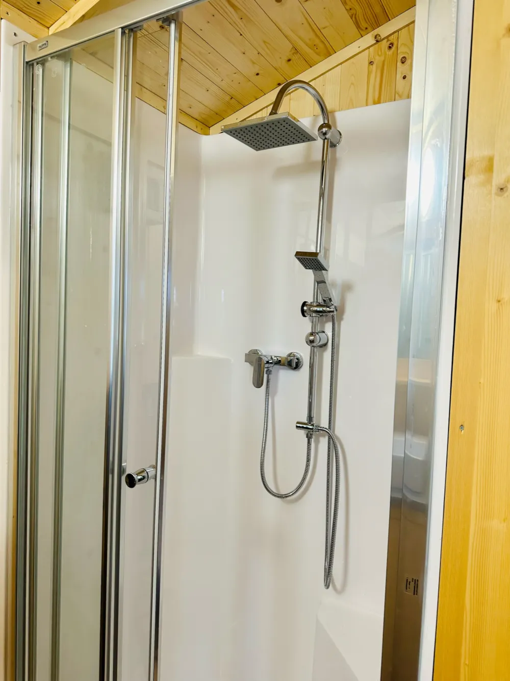 - Barrierefreie Kabine mit Dusche, WC, Waschbecken
