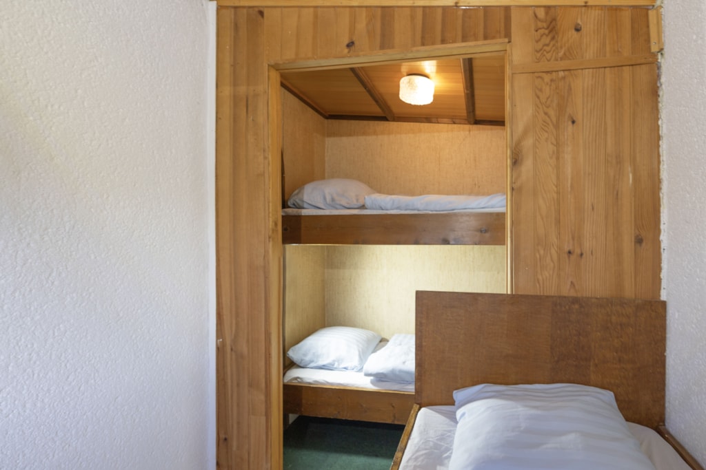 1 bedroom with 1 double bed, 1 bedroom with 1 single bed and 1 bunk bed, 1 living/dining room, 1 open-plan kitchen equipped with electric hob, fridge, microwave and filter coffee machine, 1 shower room/WC.