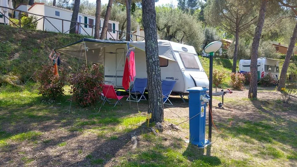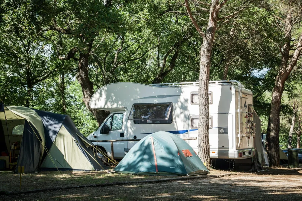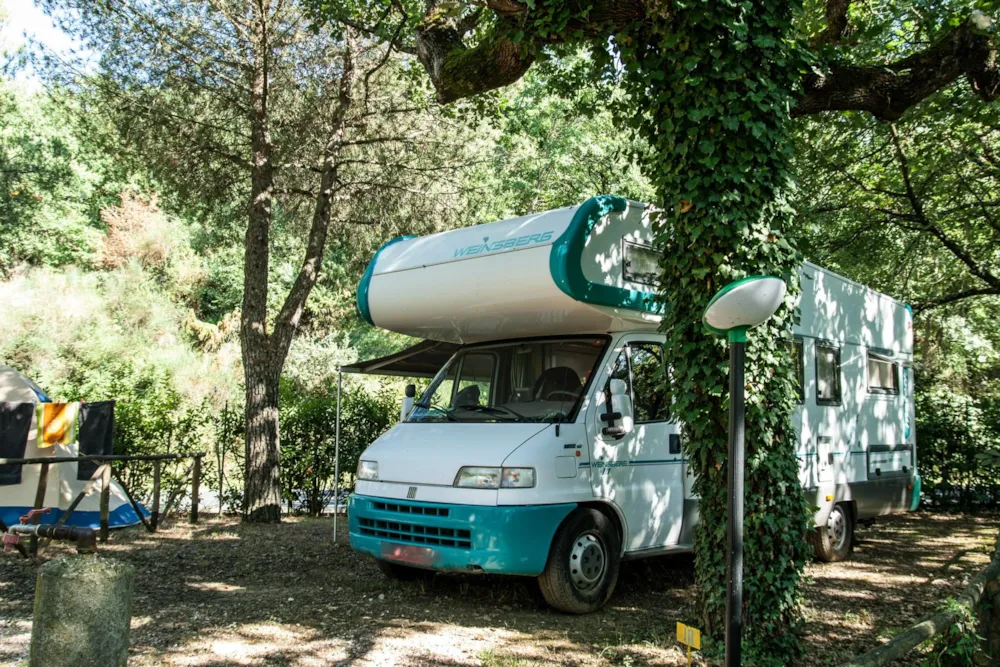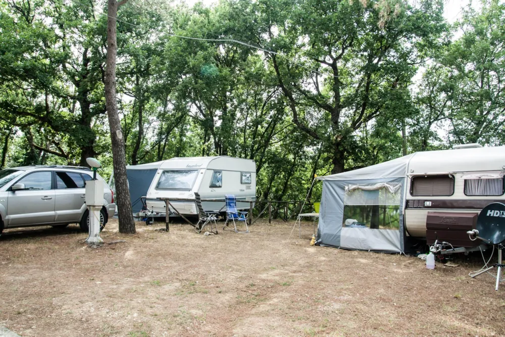 Shaded pitches of different sizes - electricity connection, toilets, chemical toilet, water charge and discharge.