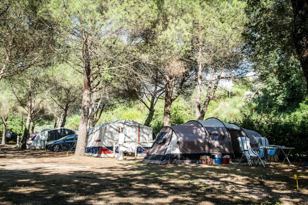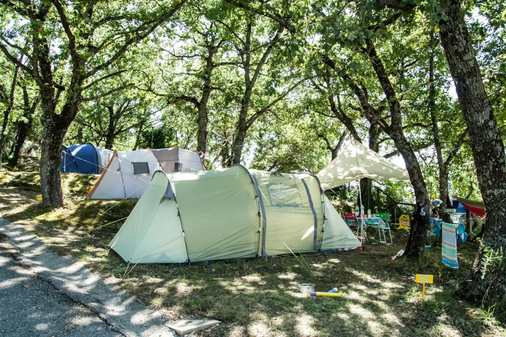 Shaded pitches of different sizes for big tent and/or with lake view - electricity connection, toilets and water.