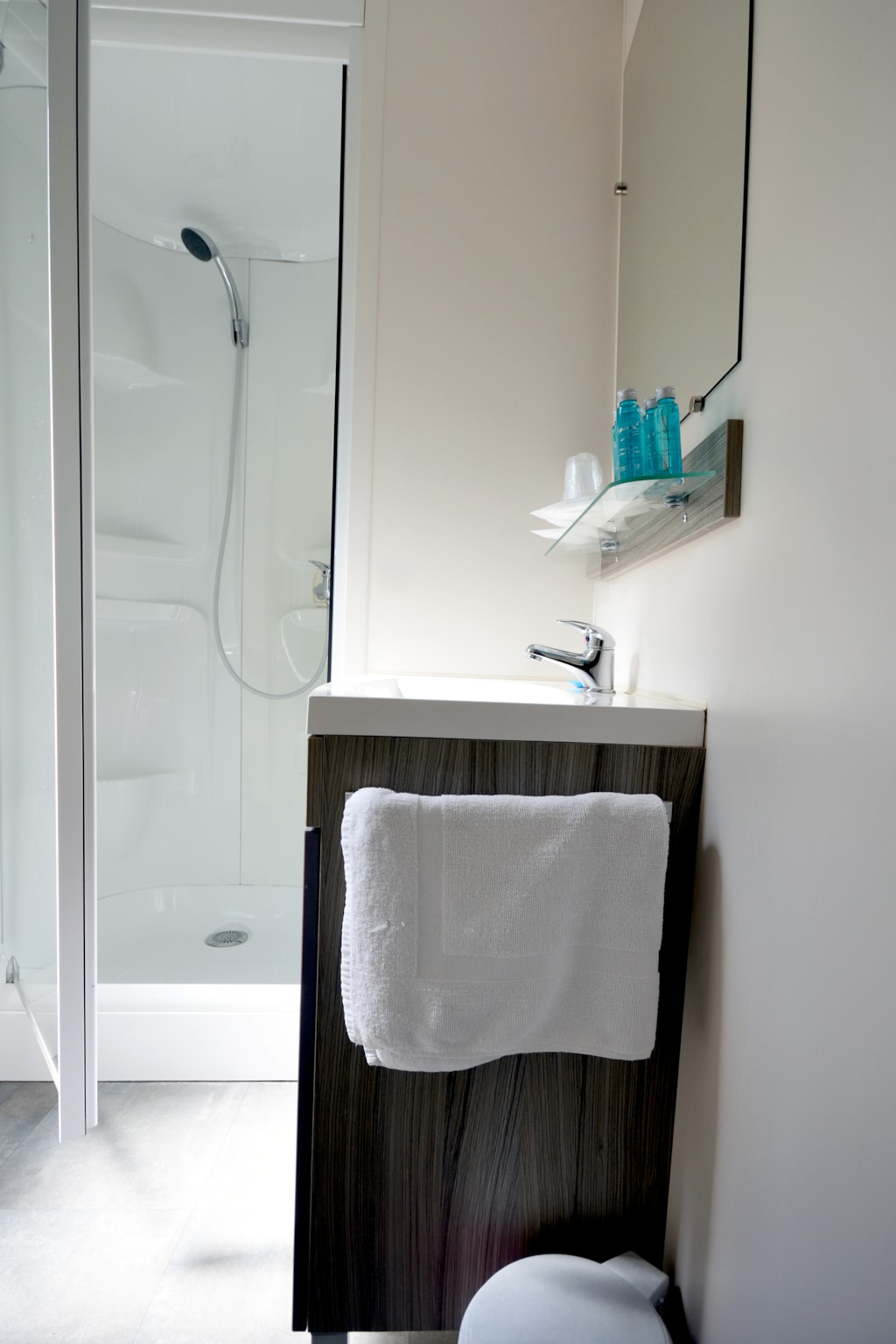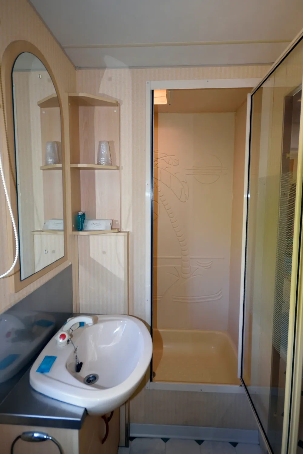Possibilité de poser ses affaires dans les douches, pas très pratique pour les personnes à mobilité réduite.