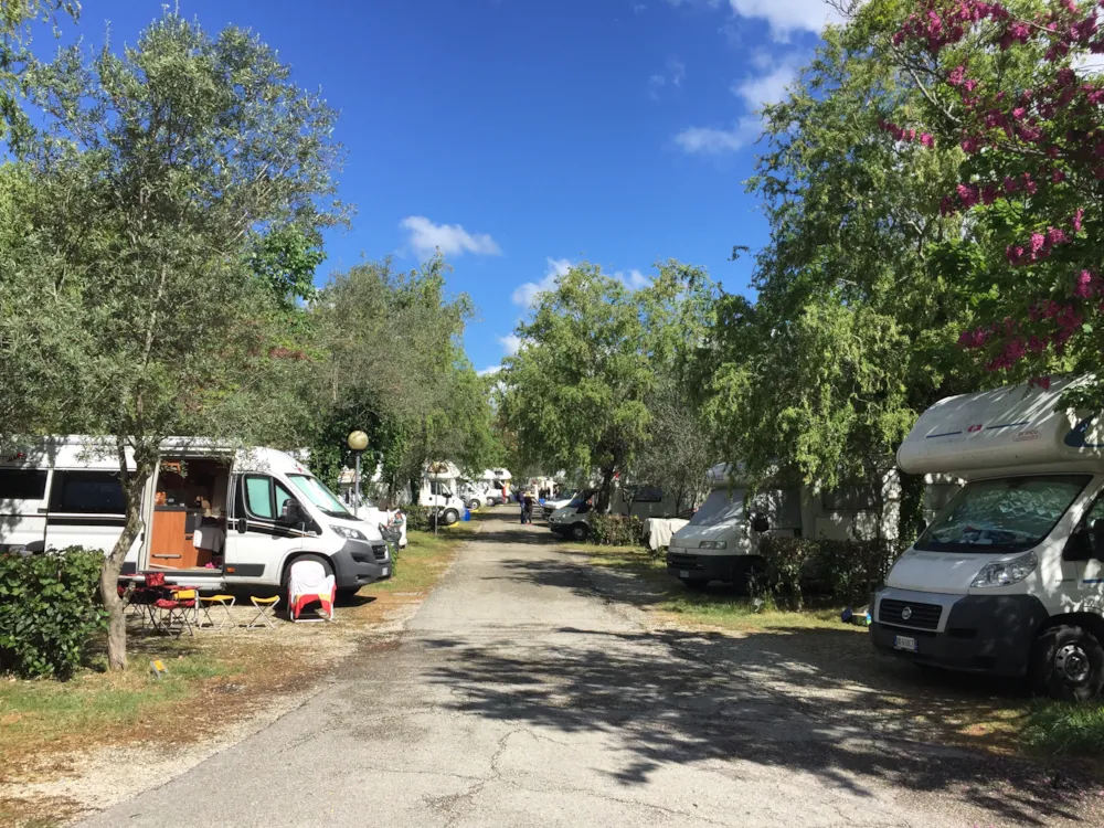 Il est situé dans une vaste surface et offre 200 places équipés des plus modernes services : eau potable et chaude 24 heures, électricité à règle CEE 220 volt/5 ampères, camper service, décharge eau noire et grise, tv satellitaire.