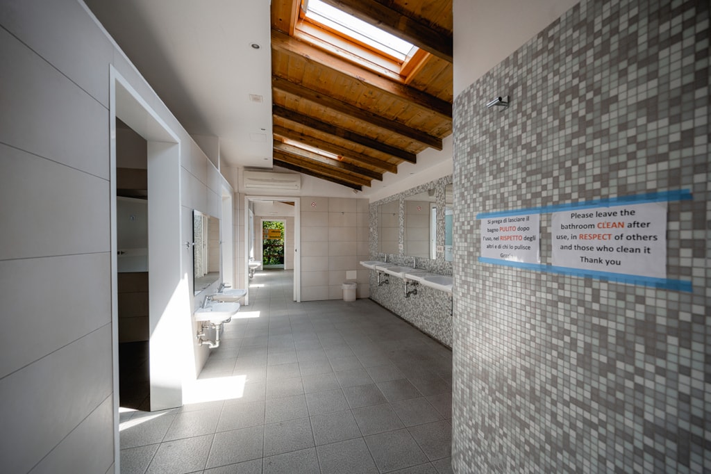 Peu de WC et douches dans le bloc sanitaire.