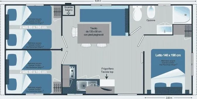 Il bungalow ha la metratura giusta per 2/3 persone.
