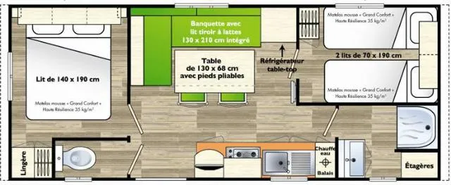 Mobil-home MERCURE 4 personnes avec douche et wc