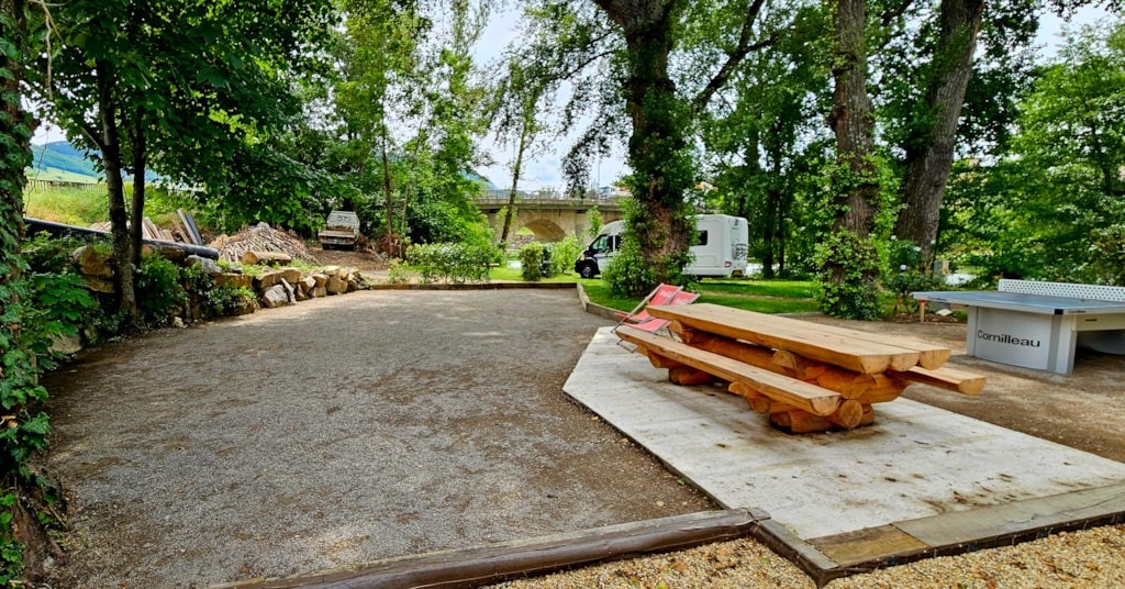 Si amélioration il peut y avoir serait : une meilleure séparation des emplacements par haies encore trop petites et manquantes par endroits! le temps règlera les choses ! ( A cause de ce fait, les gens coupent à travers les emplacements pour aller à la rivière). Il serait aussi utile je pense de placer un panneau SORTIE/EXIT vers le dernier chemin à gauche ce qui éviterait que les sortants se trompent et arrivent tout droit sur l'aire de jeu. (poussière inutile). Voila mes suggestions, ce qui n'enlèvent en rien le charme de ce camping que je recommande. Merci à l'équipe.